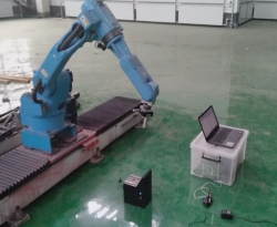 2)機(jī)器人絕對(duì)定位精度標(biāo)定系統(tǒng):針對(duì)汽車、手機(jī)、飛機(jī)等行業(yè)精密裝配需要機(jī)器人具有高絕對(duì)定位精度。為擺脫國(guó)產(chǎn)高精度機(jī)器人卡脖子困局:機(jī)器人重復(fù)定位精度高,絕對(duì)定位精度低,在國(guó)內(nèi)系統(tǒng)提出了激光約束構(gòu)建運(yùn)動(dòng)鏈標(biāo)定機(jī)器人絕對(duì)定位精度的方法,成功研制了激光+雙PSD(位置敏感探測(cè)器)的機(jī)器人標(biāo)定裝置。首次實(shí)現(xiàn)了國(guó)內(nèi)機(jī)器人控制器標(biāo)定算法自主開發(fā)標(biāo)定精度達(dá)到了0.05mm,已在國(guó)內(nèi)知名的深圳邁克訊機(jī)器人控制器公司得到推廣應(yīng)用。